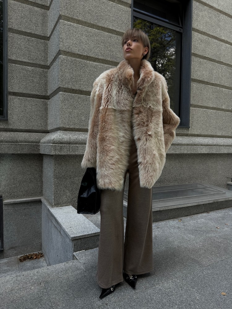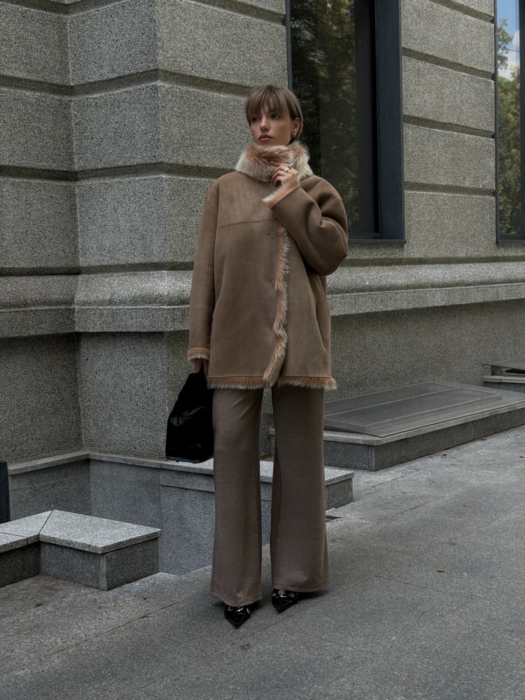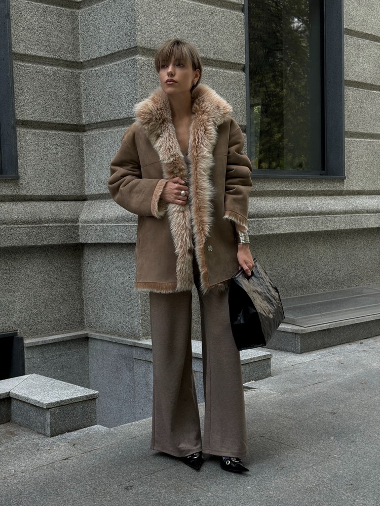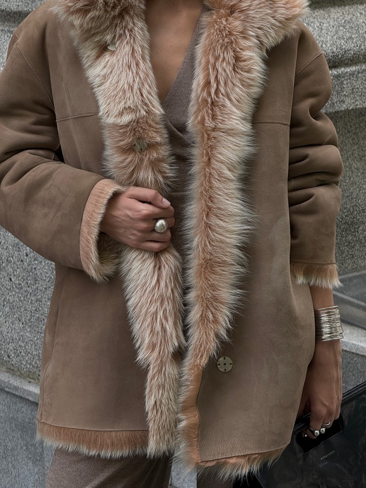 Дубленка двусторонняя из натурального меха Тоскана creme brulee