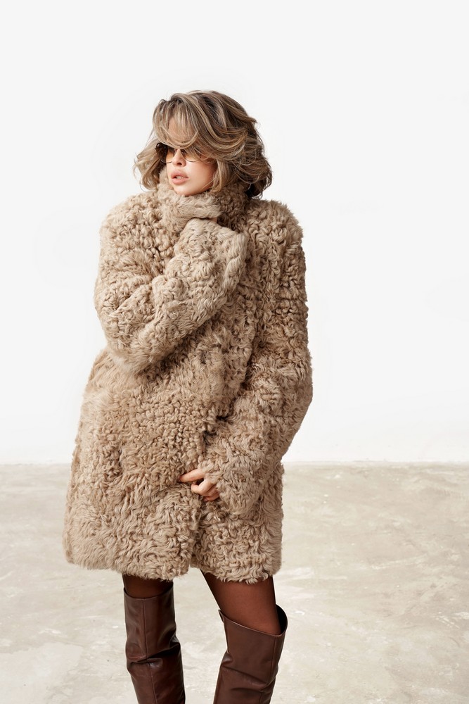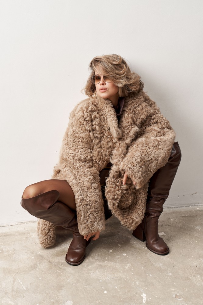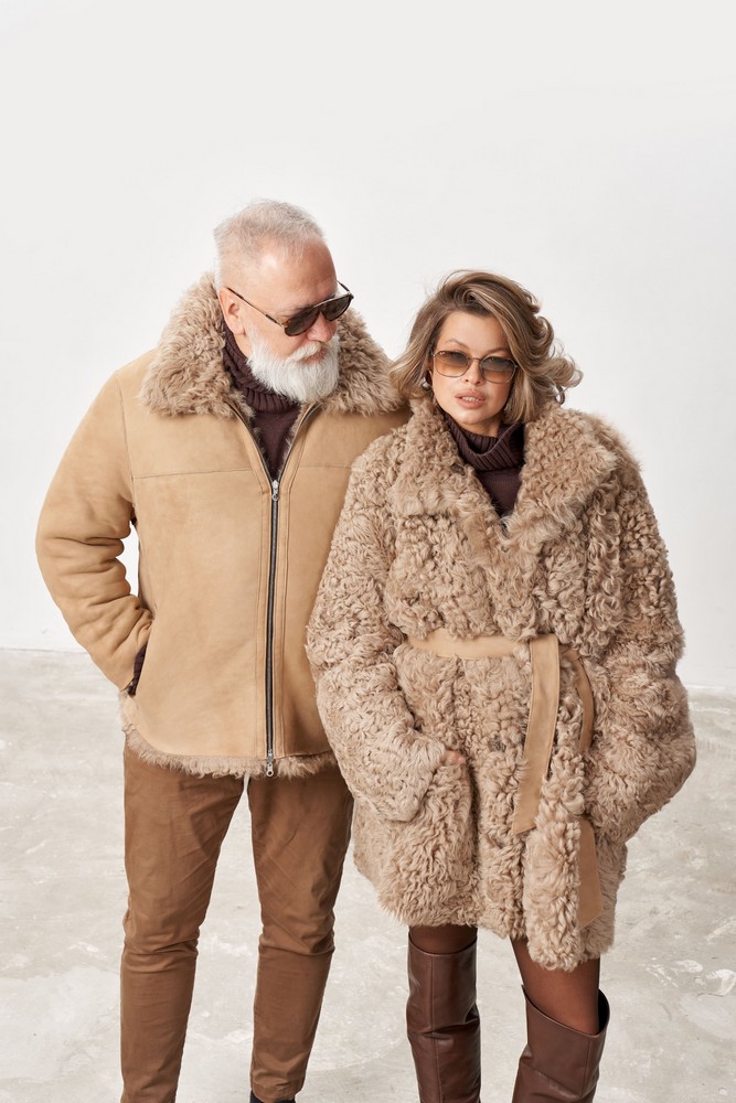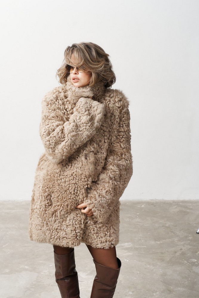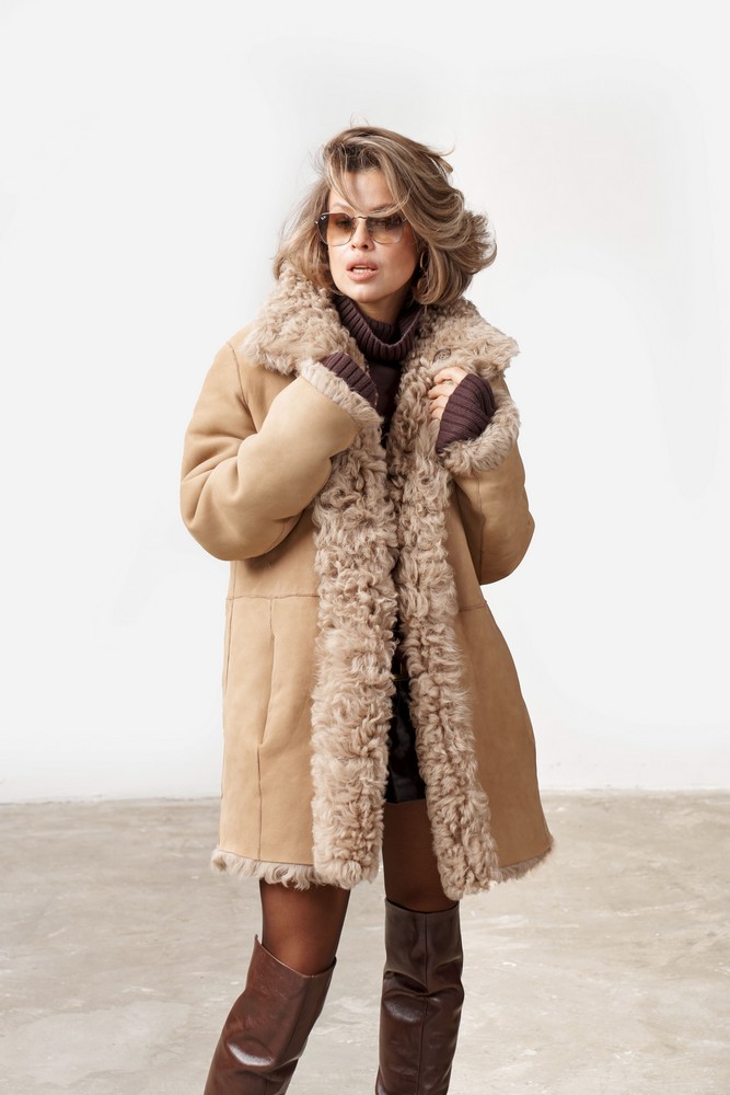 Дубленка двусторонняя с мехом тиградо in taupe caramel