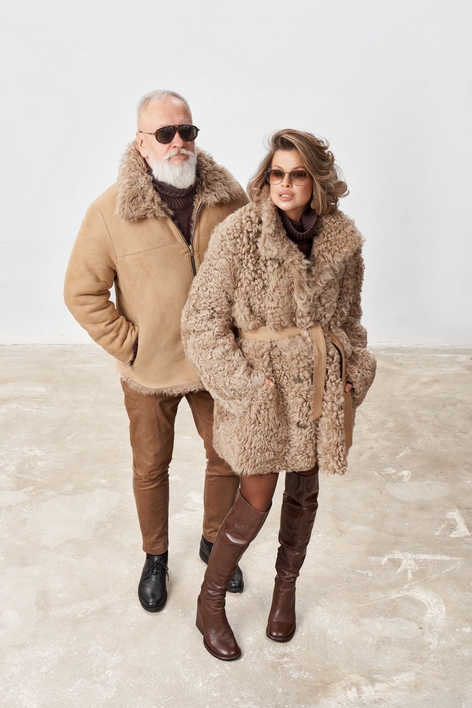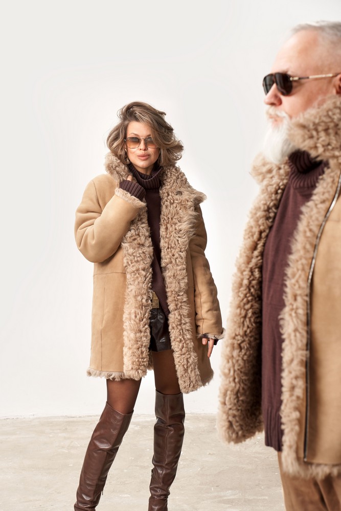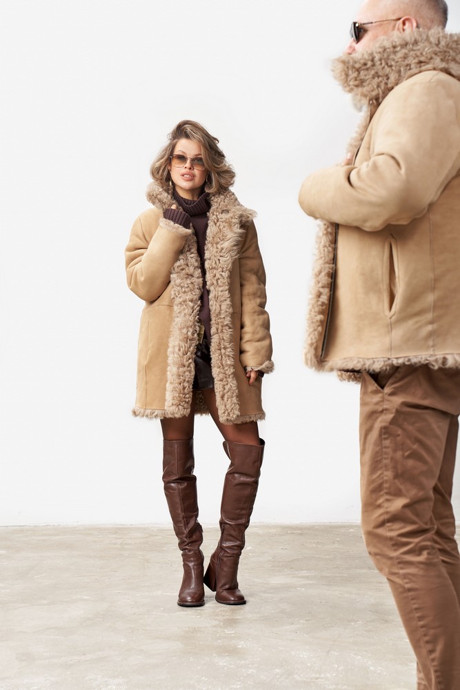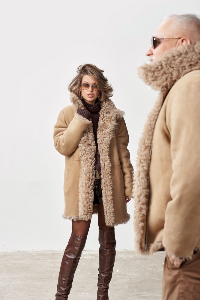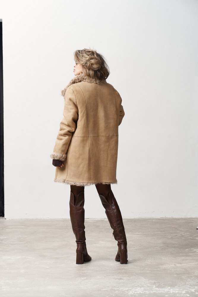 Дубленка двусторонняя с мехом тиградо in taupe color