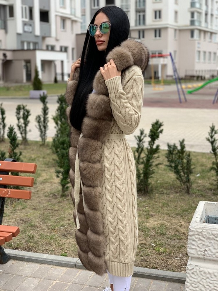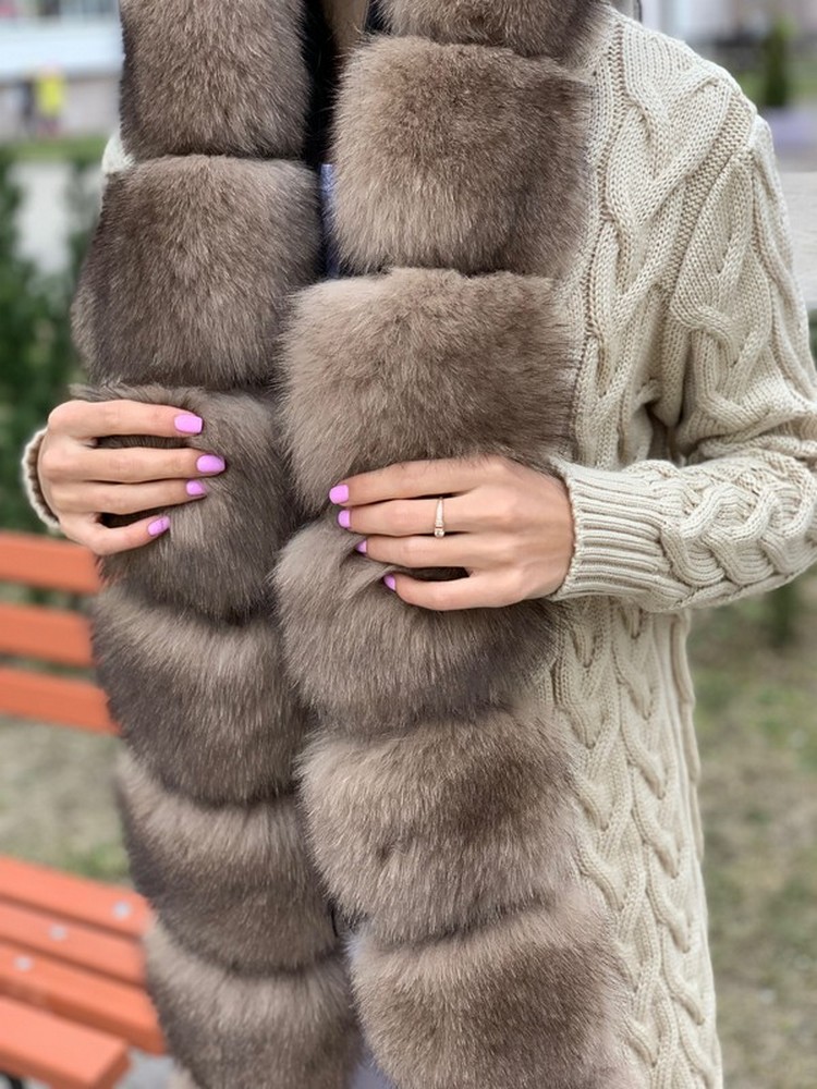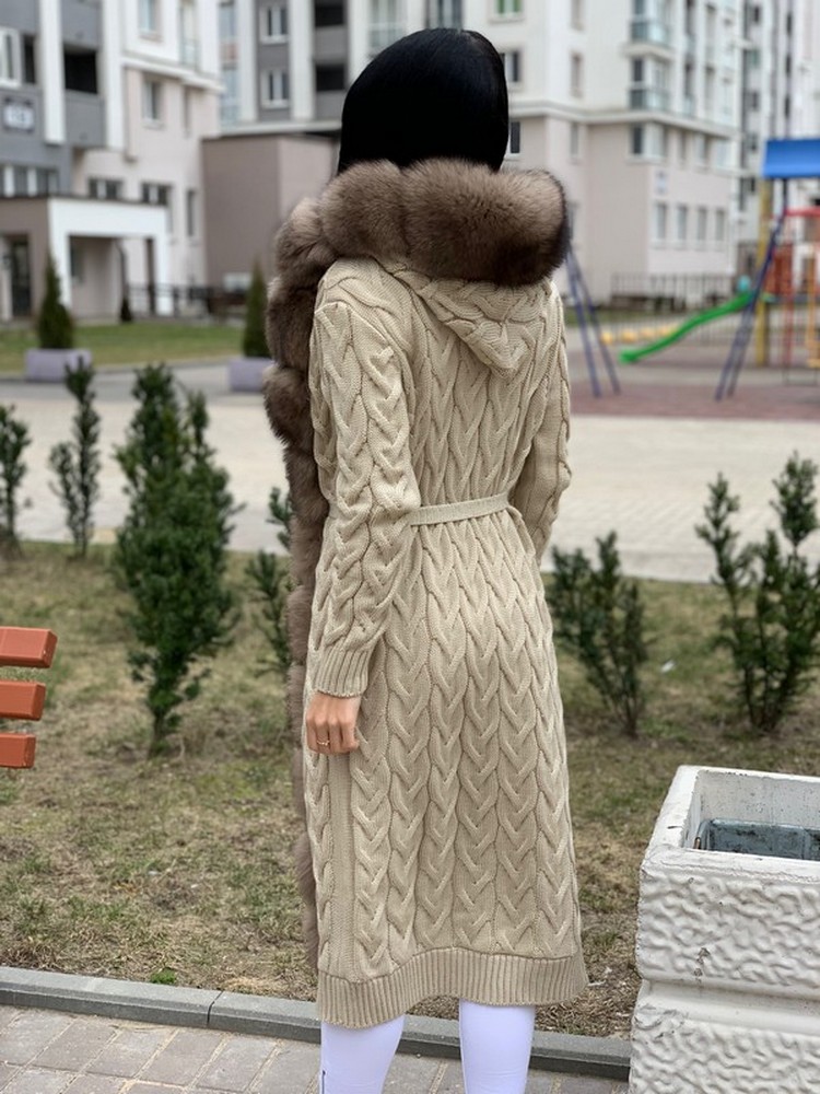 КАРДИГАН КОСЫ С ОТДЕЛКОЙ ИЗ МЕХА АУКЦИОННОГО ФИНСКОГО ПЕСЦА