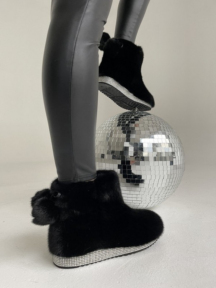 Норковые угги BLACK GLITTER