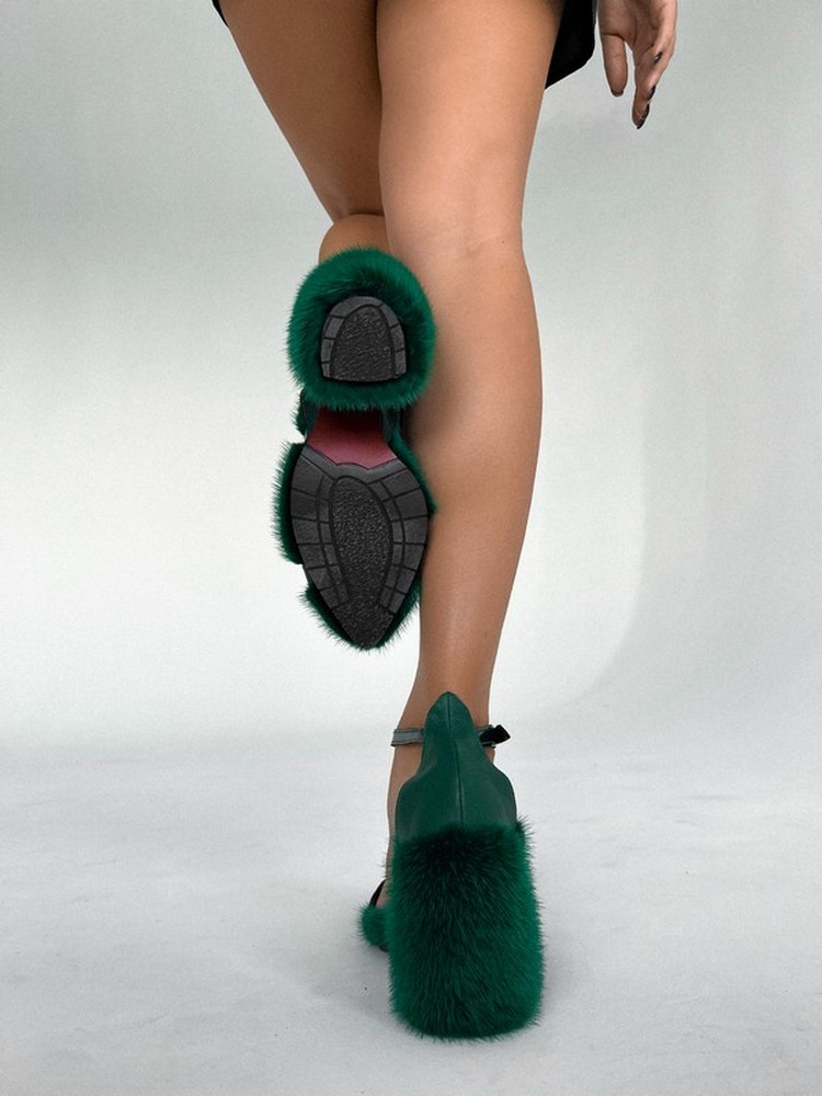 Босоножки из норки на каблуке