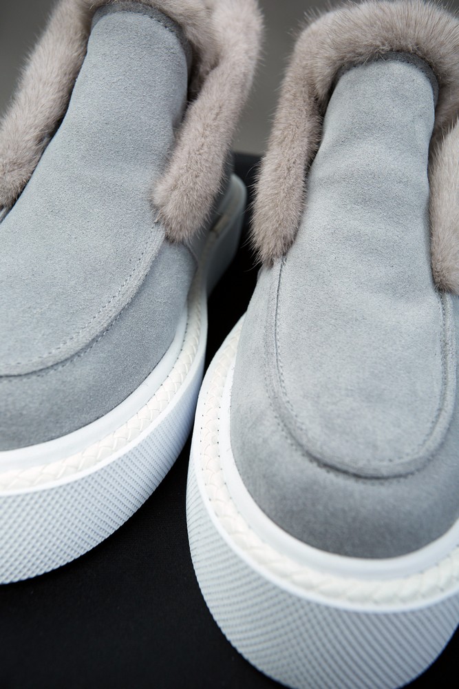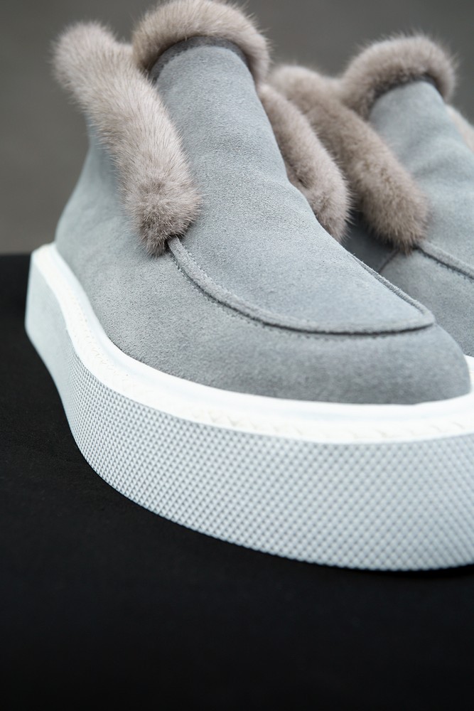 Ботинки из натуральной замши в голубом цвете