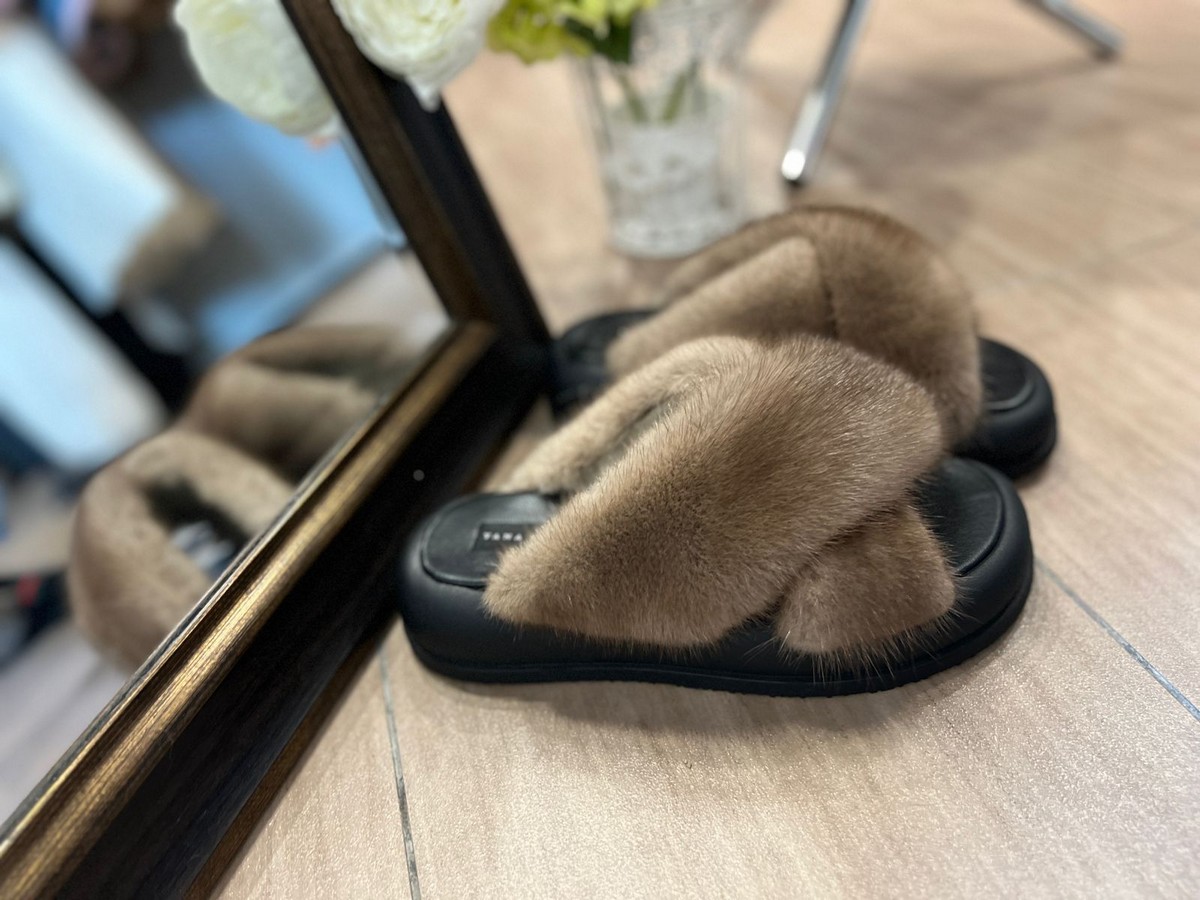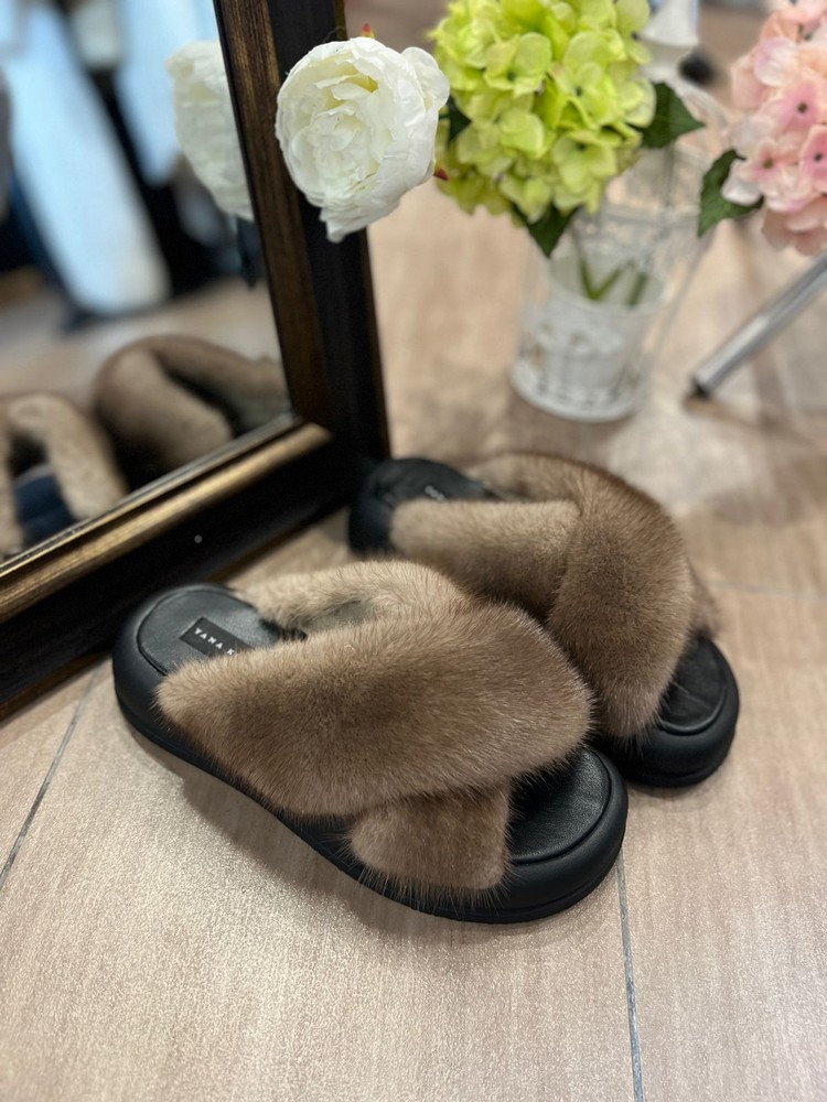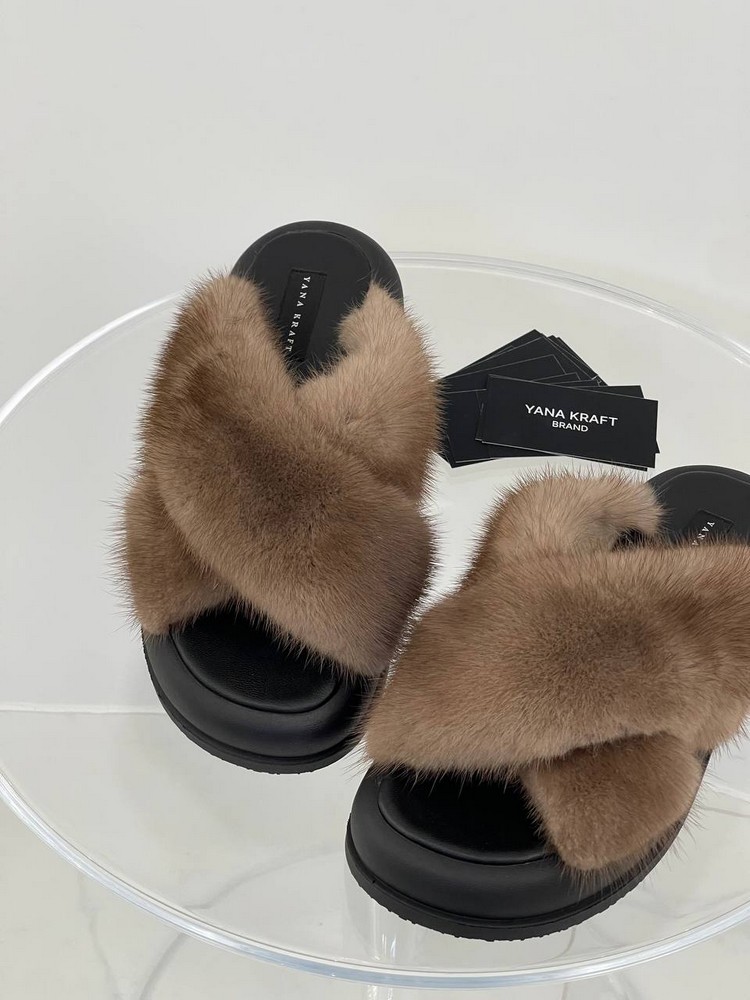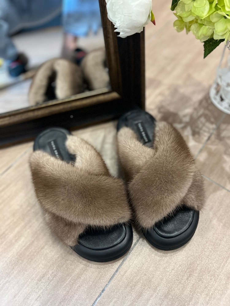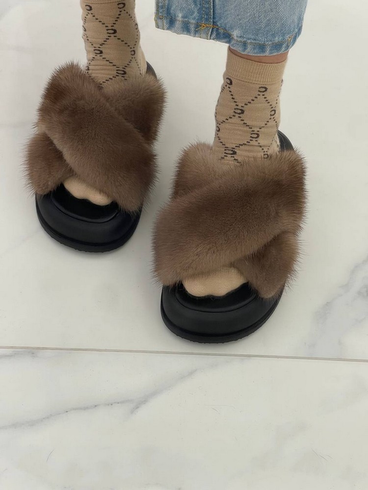 Норковые тапочки BROWN