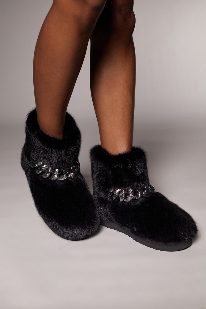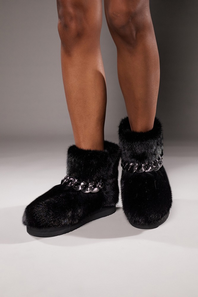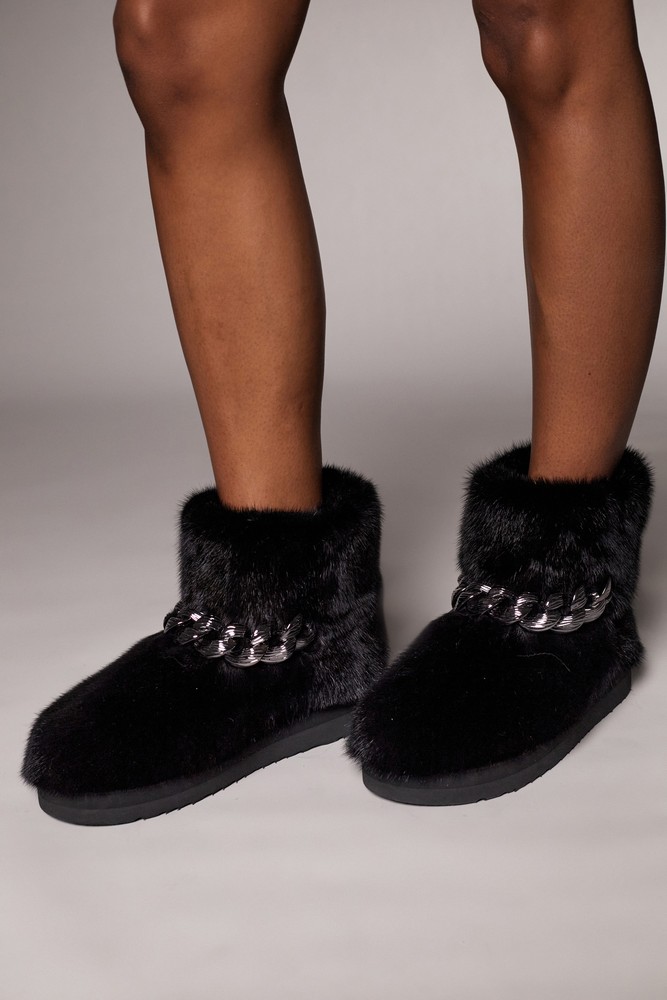 Угги из меха норки с цепью