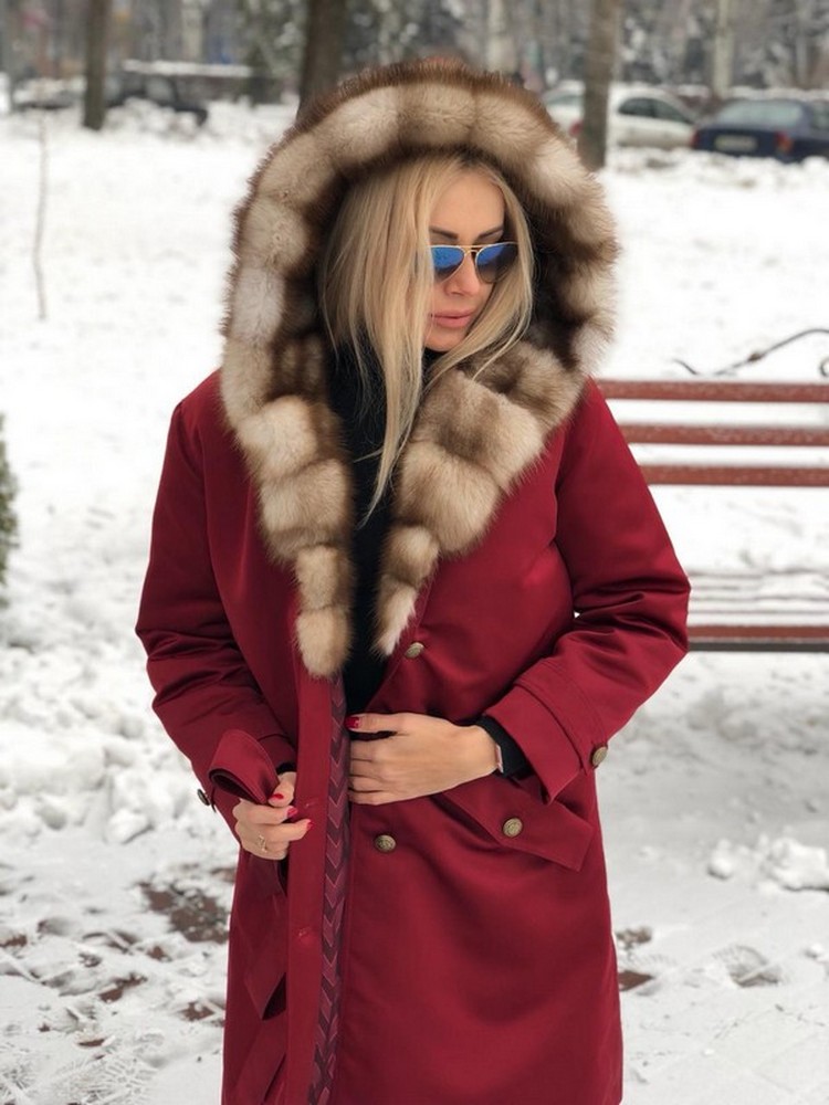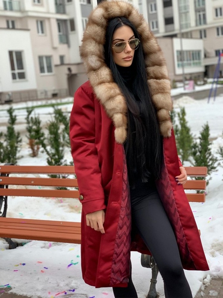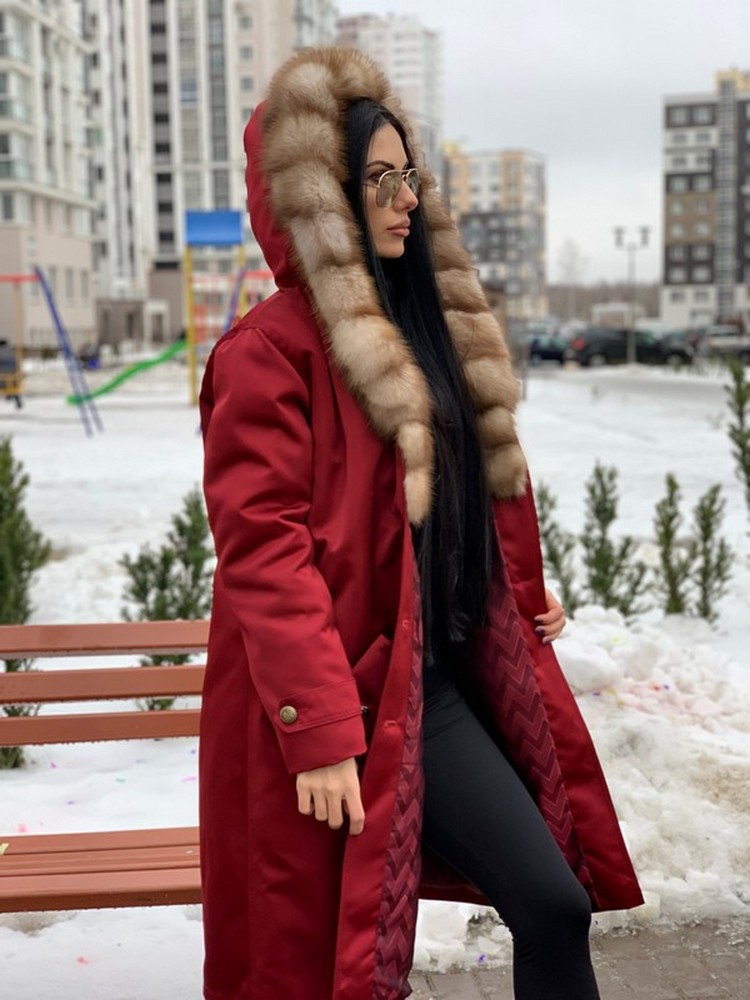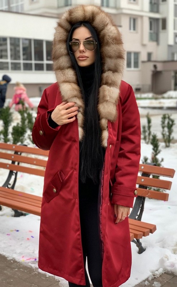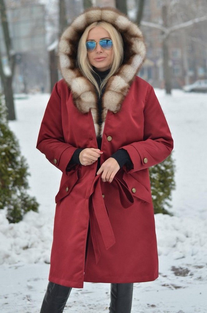 УТЕПЛЁННОЕ ПАЛЬТО-ПАРКА С КАПЮШОНОМ ИЗ МЕХА КУНИЦЫ