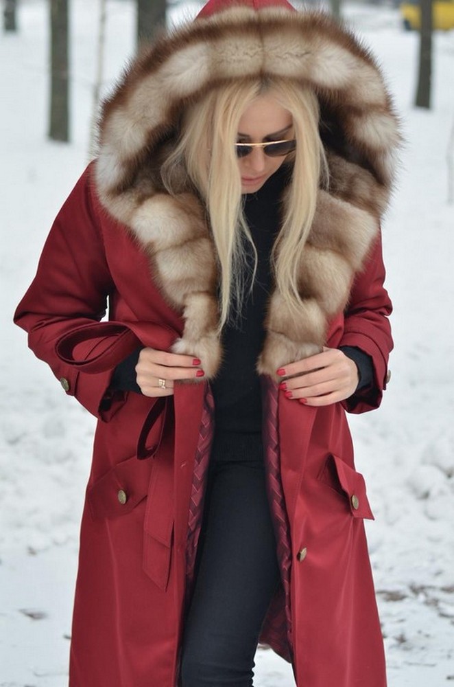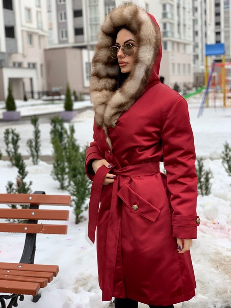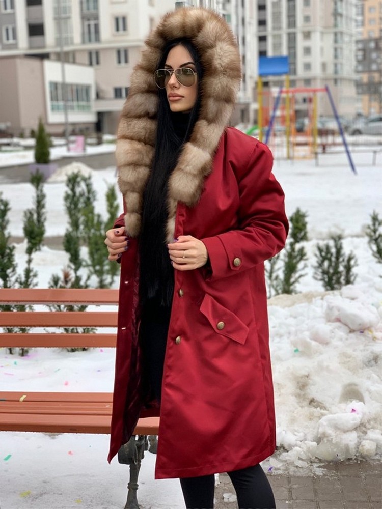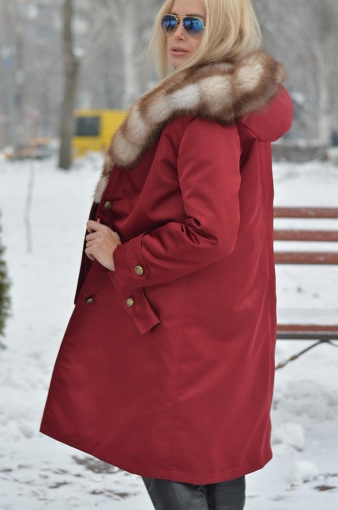 УТЕПЛЁННОЕ ПАЛЬТО-ПАРКА С КАПЮШОНОМ ИЗ МЕХА КУНИЦЫ