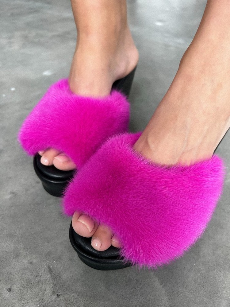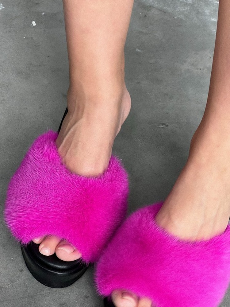 Сабо с мехом норки РОЗОВЫЕ