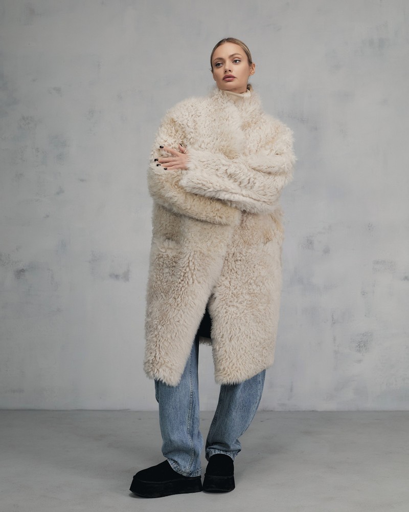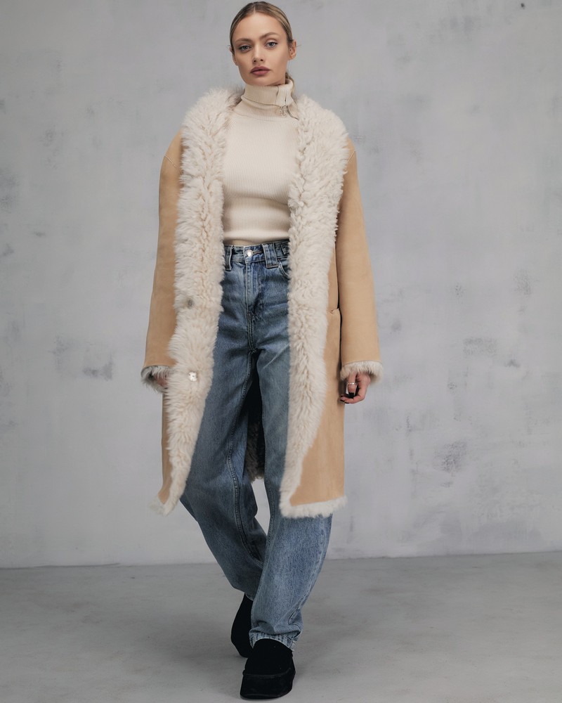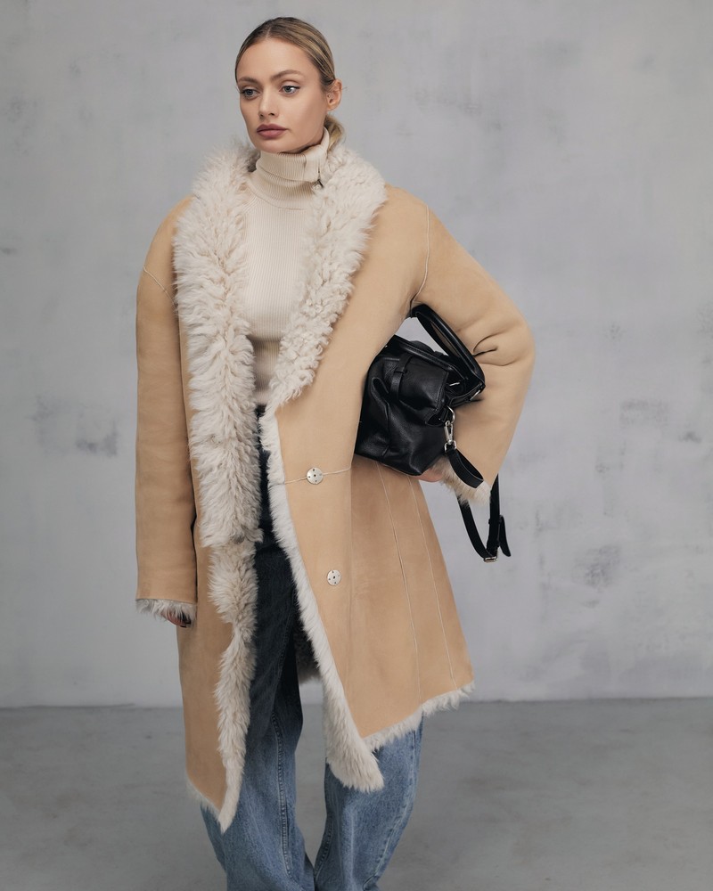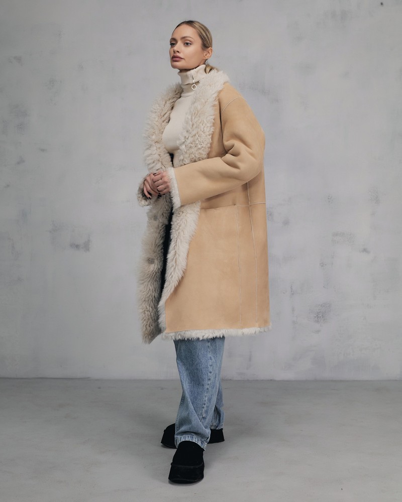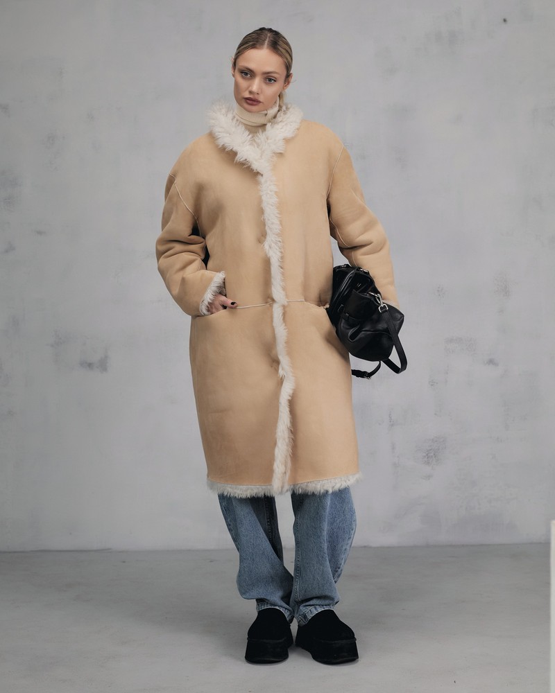 Дубленка двусторонняя с мехом тиградо MUTED BEIGE