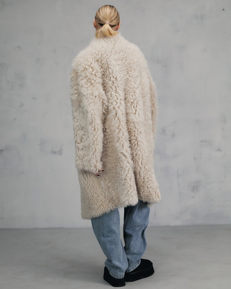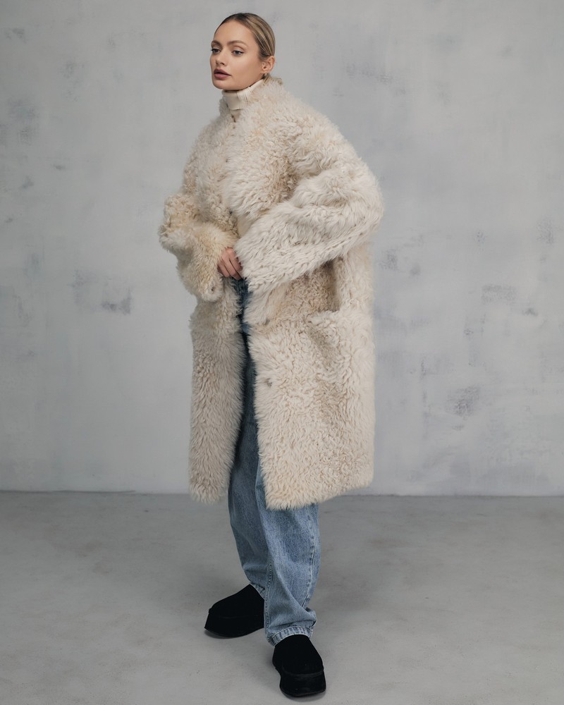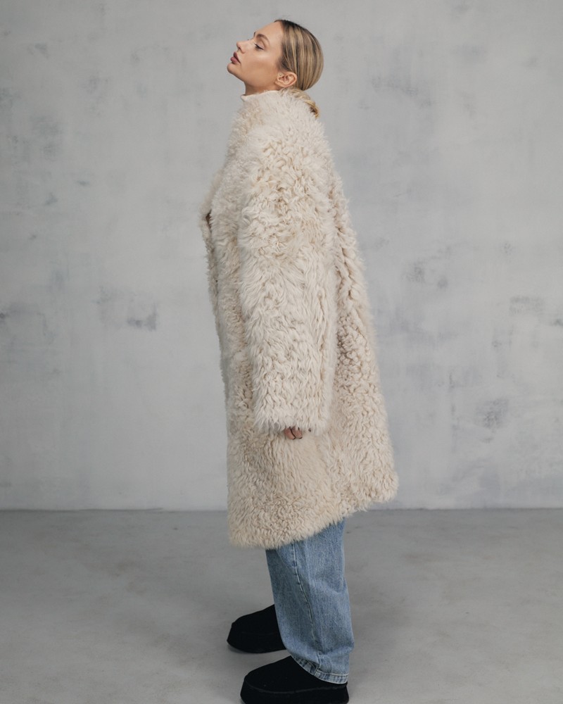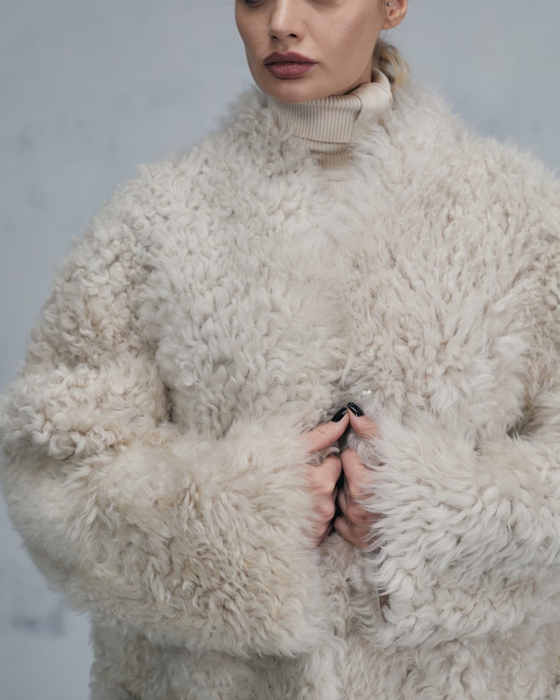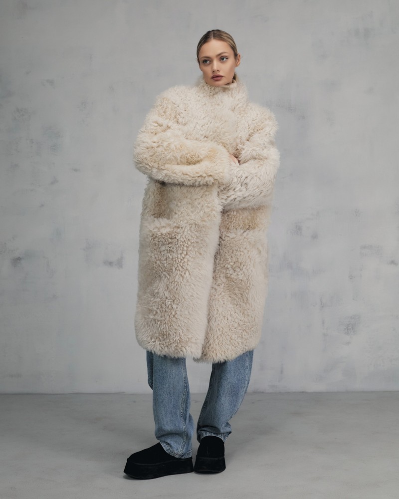 Дубленка двусторонняя с мехом тиградо MUTED BEIGE