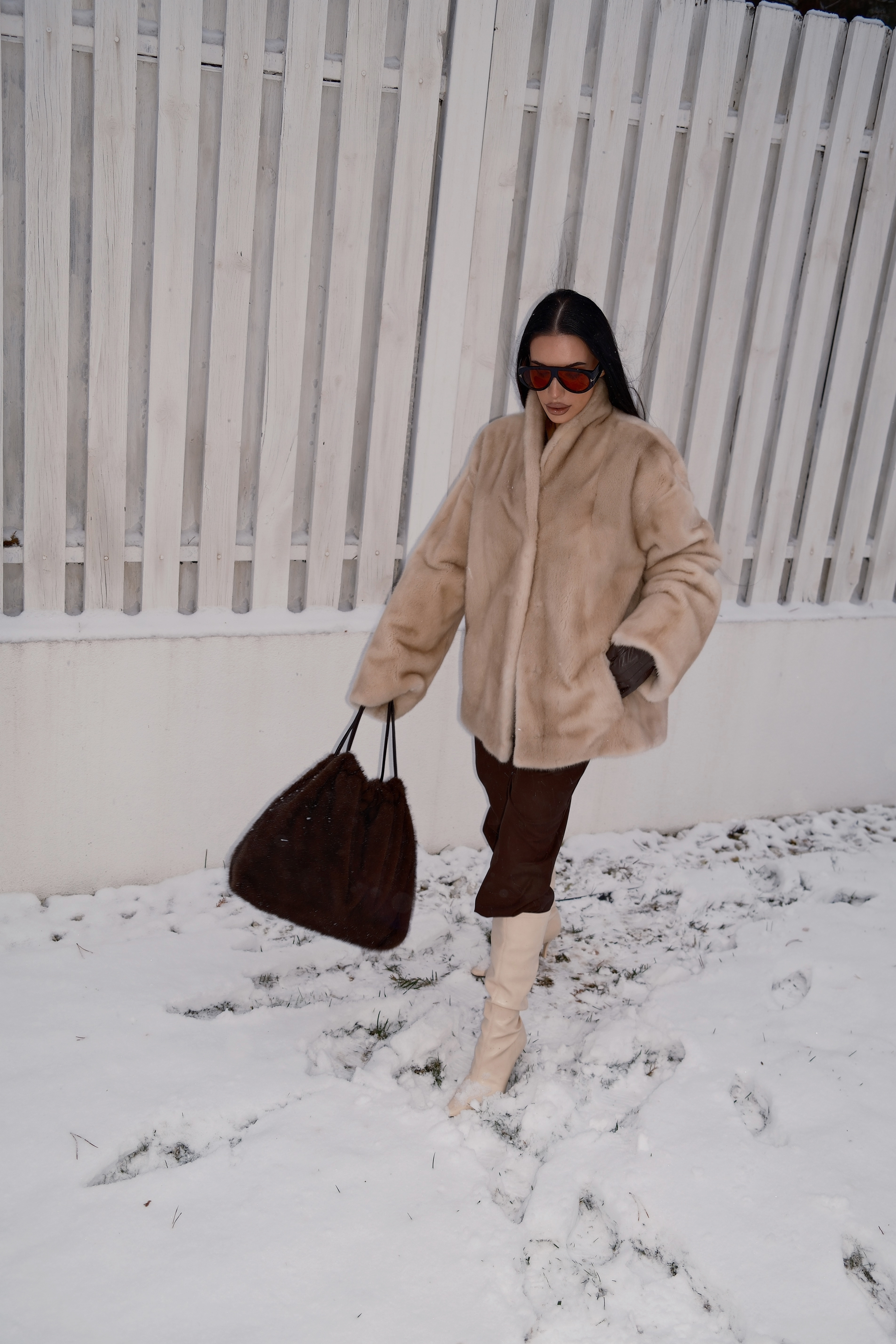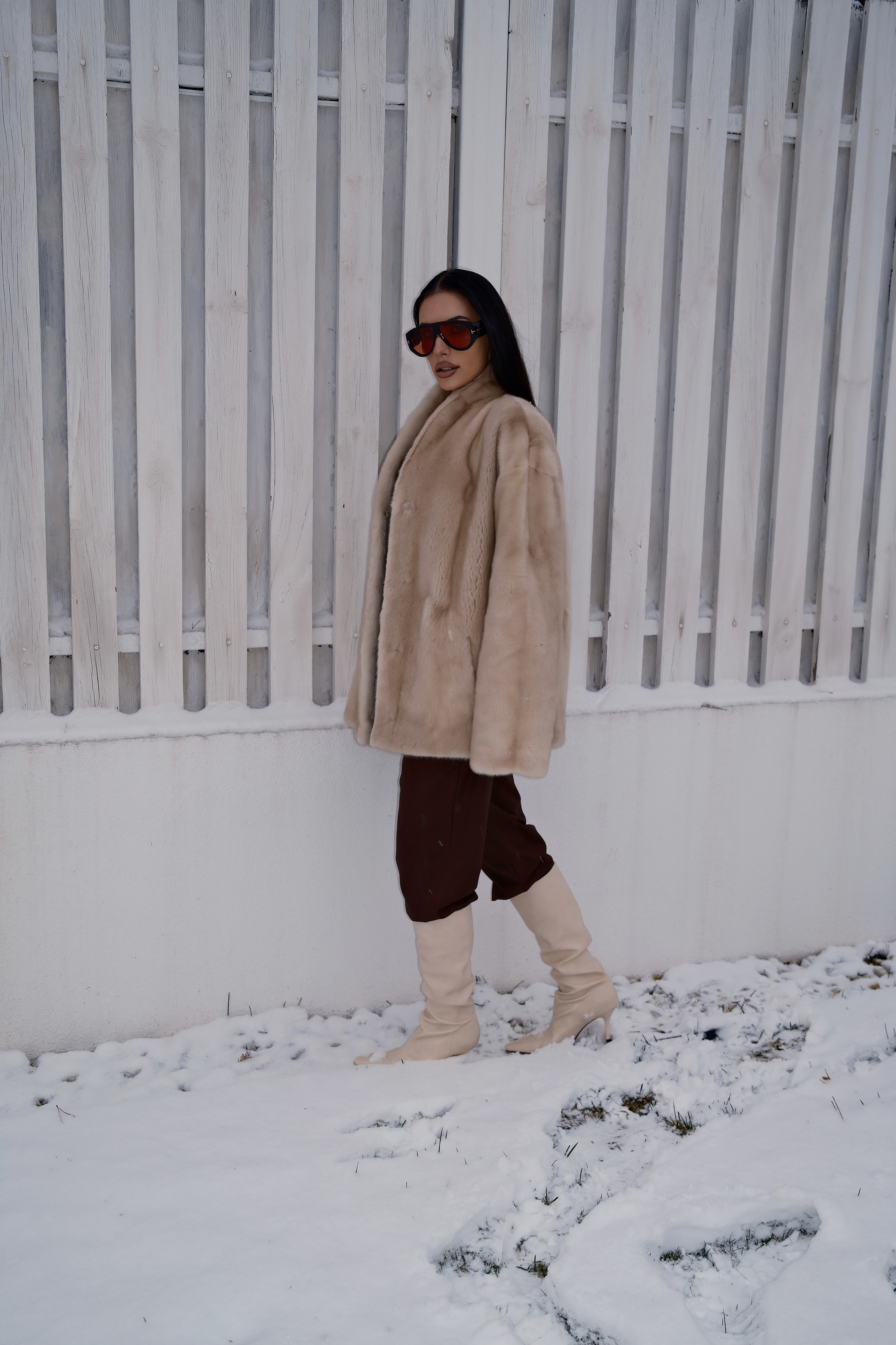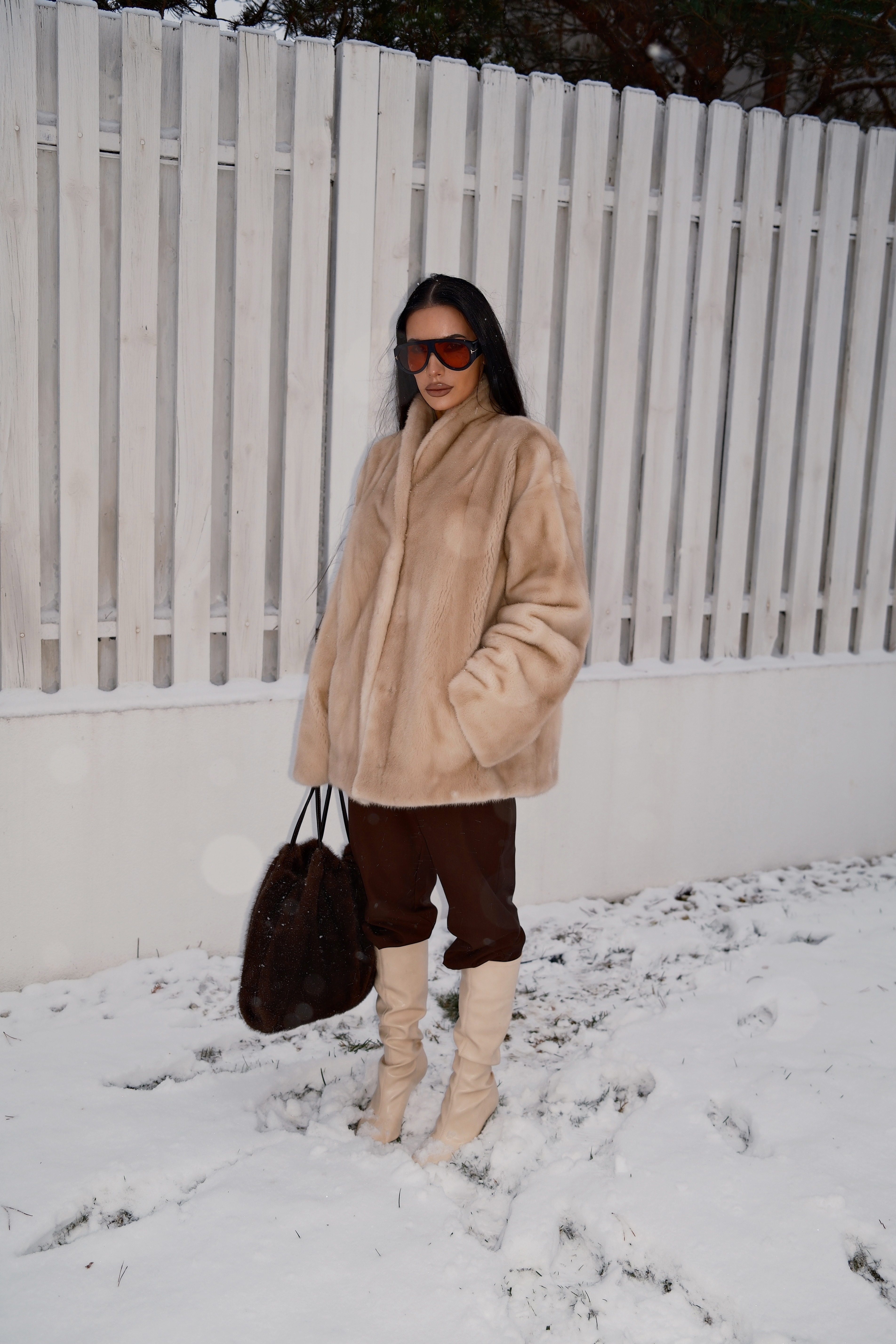 Шубка из натурального меха норки паломино